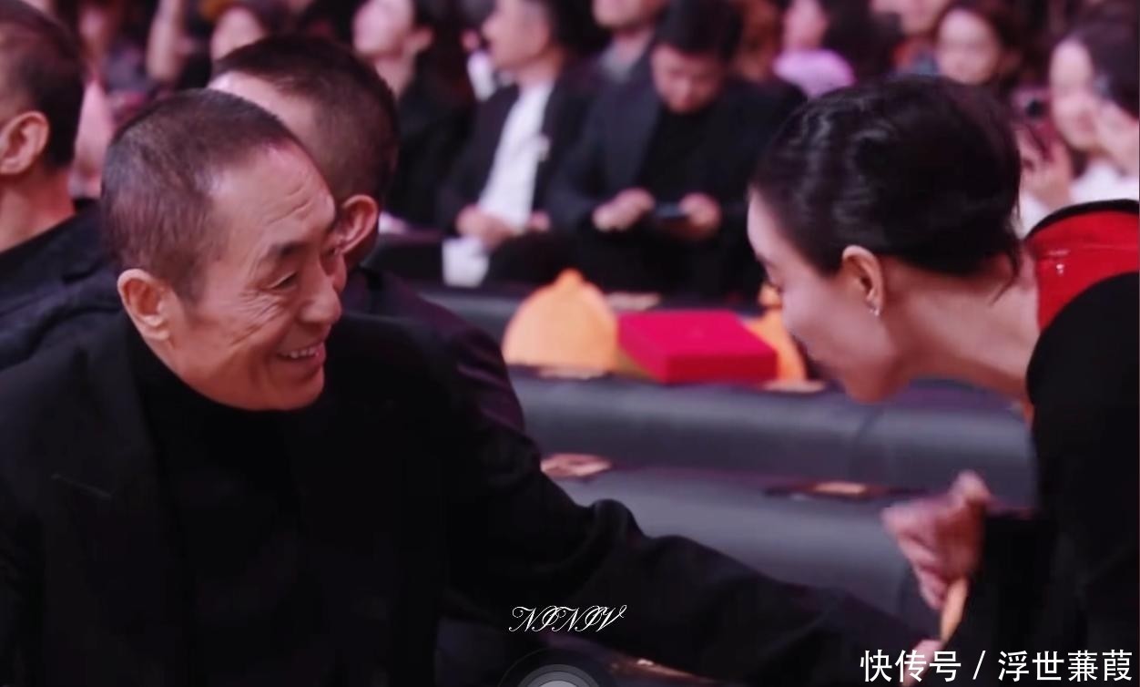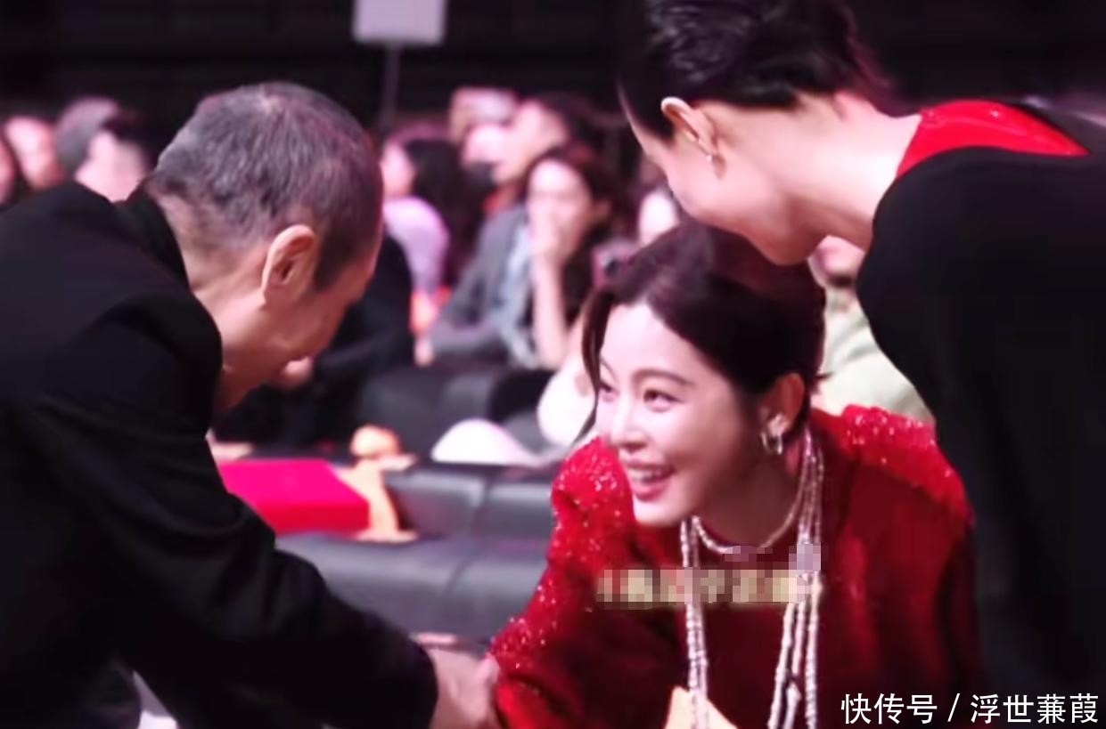 张艺谋颔首致意,她立即起身,双手郑重相握,目光专注,姿态谦和而不失底气。